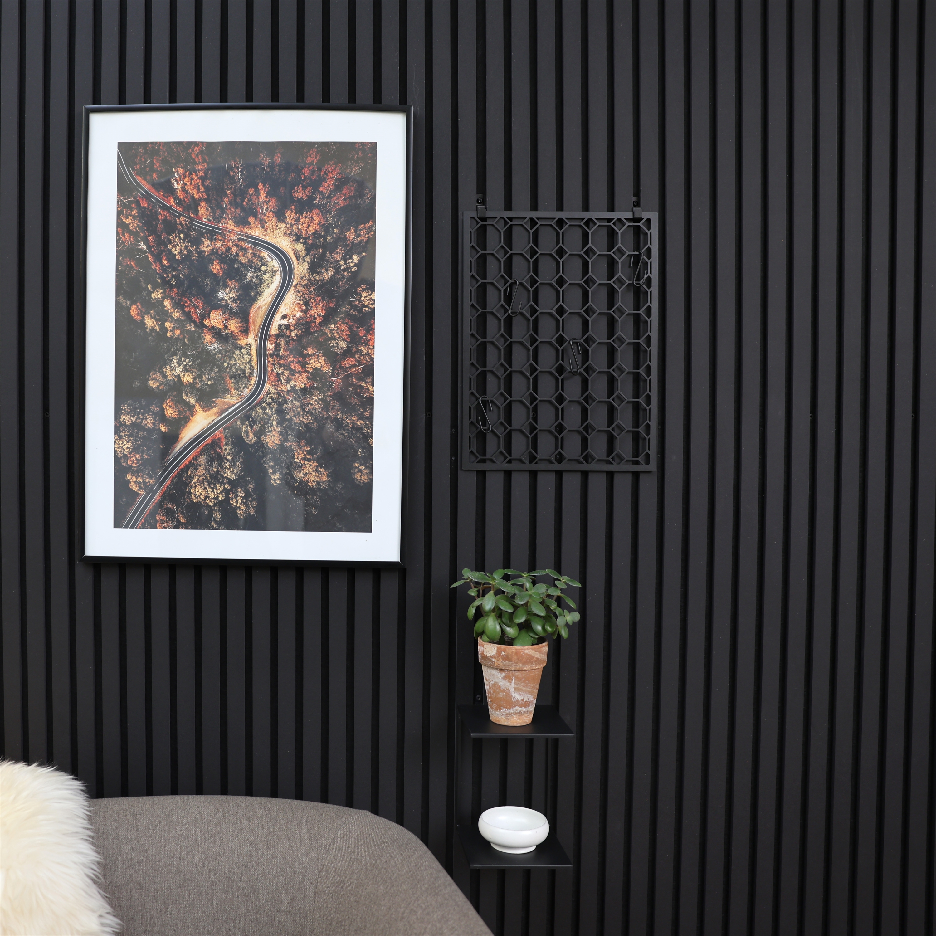 Einfach zwischen den Leisten der Akustikpaneele zu montieren. Für vertikal oder horizontal montierte Paneele geeignet.