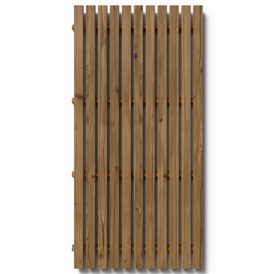 Gefertigt aus ThermoWood – thermisch behandeltem Holz, das speziell für mitteleuropäische Witterungsbedingungen entwickelt wurde. Es ist formstabil, reduziert die Feuchtigkeitsaufnahme und bietet eine langlebige Lösung mit minimalem Pflegeaufwand. Mit der Zeit entwickelt das Holz eine natürliche silbergraue Patina.
