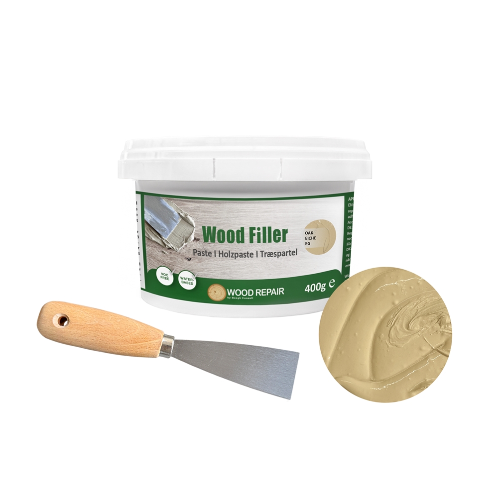 Wood Filler ist gebrauchsfertig und lässt sich einfach direkt aus dem Eimer auftragen. Für die Anwendung benötigen Sie ein Spachtelwerkzeug – und das ist selbstverständlich im Lieferumfang enthalten! Denken Sie auch daran, Schleifpapier und Oberflächenbehandlung bereitzuhalten, um das beste Ergebnis zu erzielen.